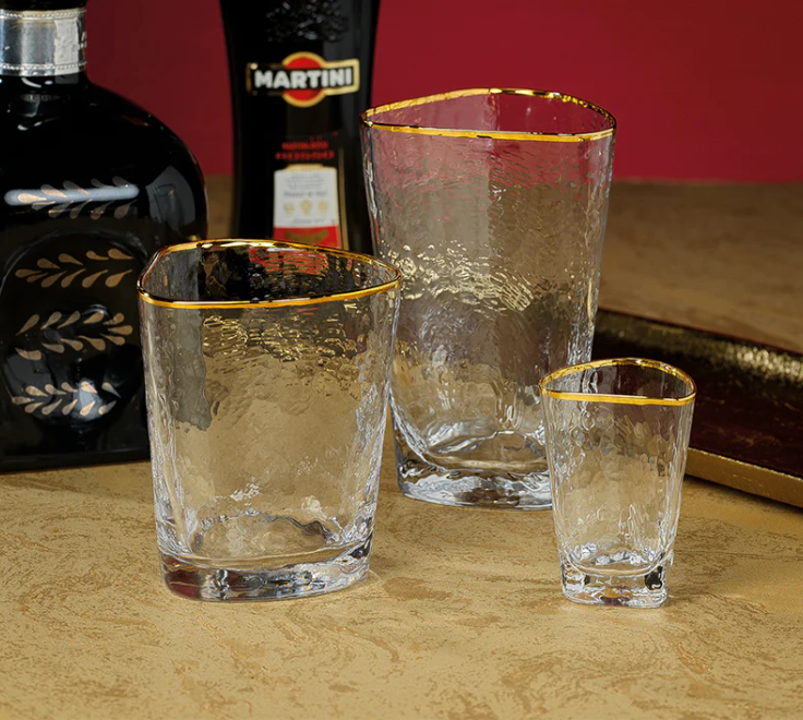 Aperitivo Triangular Double Old Fashioned Glass - Clear with Gold Rim