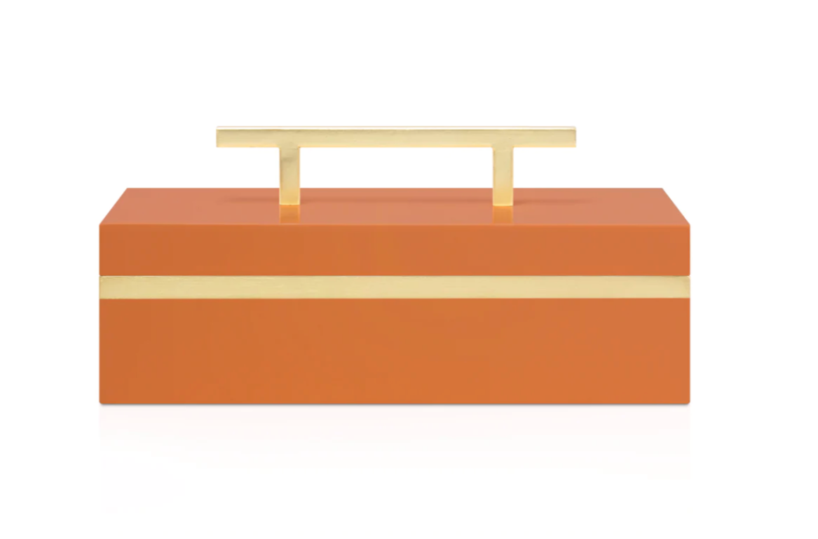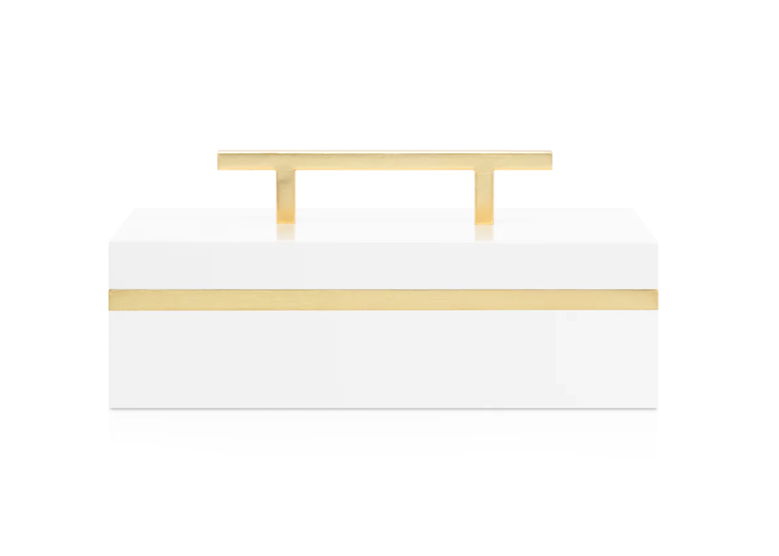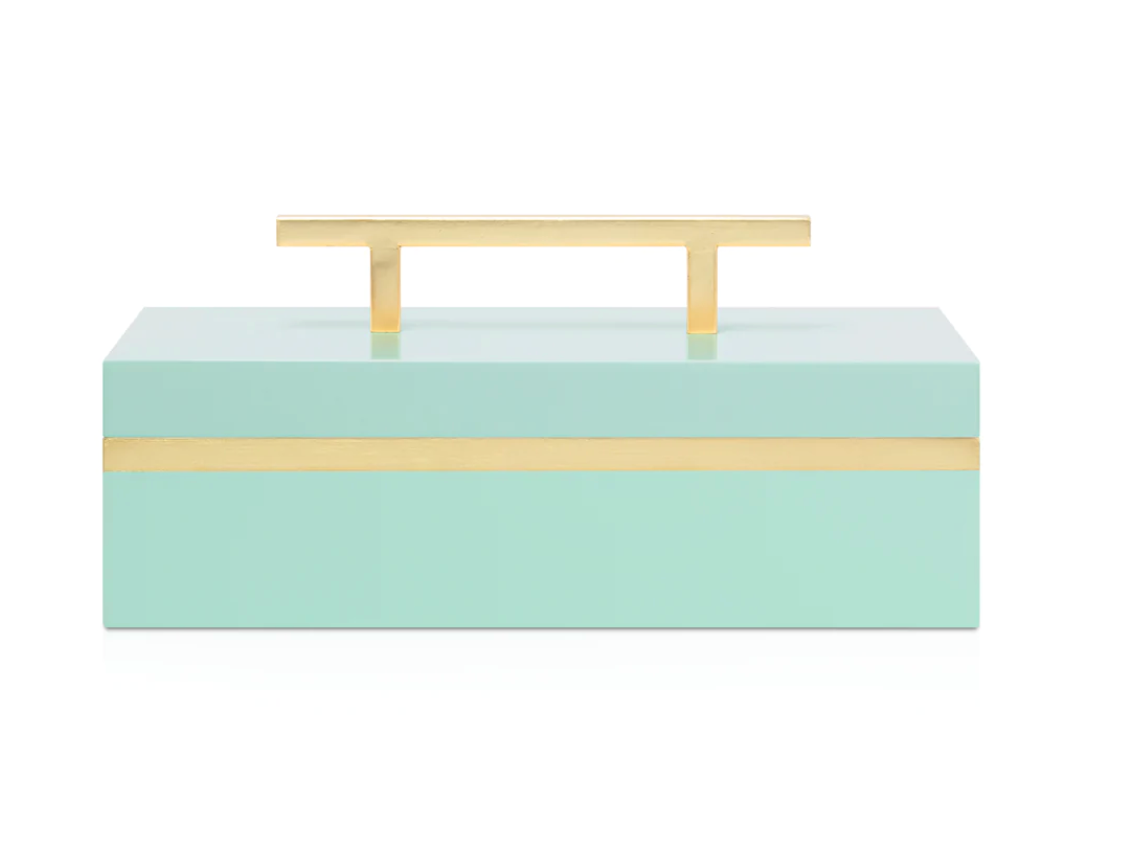Elegant, eye-catching, with a vintage allure, the Blair Box is an absolute show stopper to accent multiple décor styles. This sleek and stylish rectangular box is offered in high gloss mint with a tastefully shimmering gold leaf trim. From coastal and beachy-chic to upscale farmhouse, the Blair Box is sure to beautifully accent any living room, bedroom, or office space it illuminates.