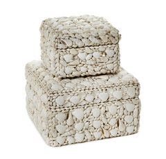 Carefully constructed with a special formulated resin, these architecturally inspired boxes are a stunning addition to any coffee table or bookshelf, effortlessly revitalizing your living space with their artisanal charm. The intricate mosaic design, crafted with utmost precision, showcases the inherent beauty of natural materials, adding a touch of elegance to your home decor. In a natural color, this is sure to elevate your interior aesthetic. Embrace the artistry and versatility of our exquisite, covered box, where tradition and craftsmanship converge to redefine the essence of refined home design.