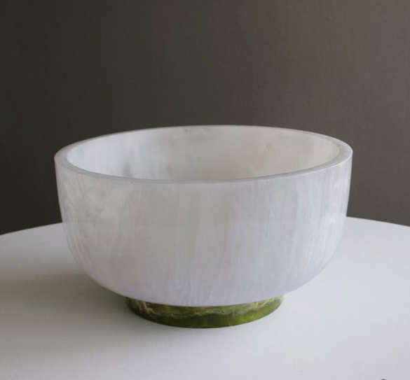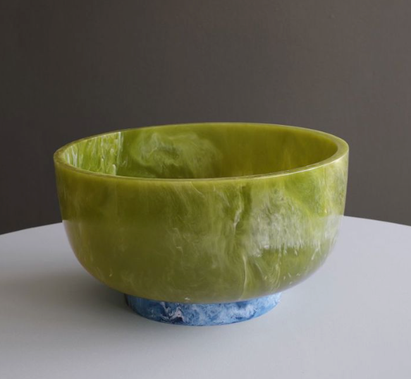 By popular demand! New resin offerings from Beatriz Ball add boldly colorful designs that bring life to your table. Beatriz Ball introduces large and small round bowls with contrasting bases, plus large oval bowls also with contrasting bases all in colorful translucent resin. The RESIN Rio Large Bowl with Base (Blue and Green) is perfect for serving or display. Pair with a smaller bowl or servers for an awesome set. Makes a great gift. Rounding out the new resin offerings are salad servers with vibrant “bubble” handles, and tines and spoons resembling natural horn. Five color combinations available. Each resin piece is unique with its own swirled color pattern, adding one-of-a-kind artistry to your table setting. BPA free. Hand wash only.