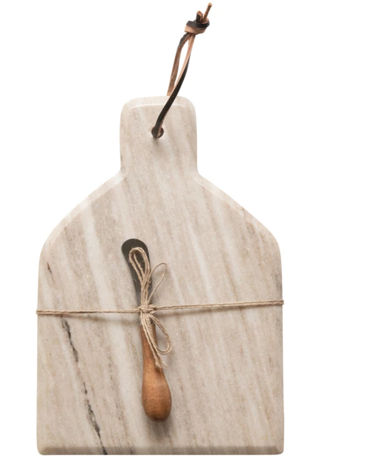 This marble cutting board is both sleek and classic. With a buff color, this neutral piece fits seamlessly into any modern home, and will add sophistication to any kitchen setup