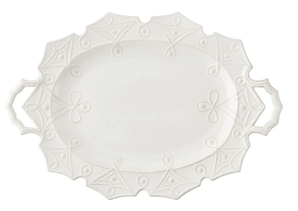 From our Jardins du Monde Collection - Elegant angularity reminiscent of the precisely ordered hedgerows of historic gardens adorn this handsome platter. Generous handles make for effortless serving of your holiday roast, though you may want to showcase this artistic piece year round in your sideboard.