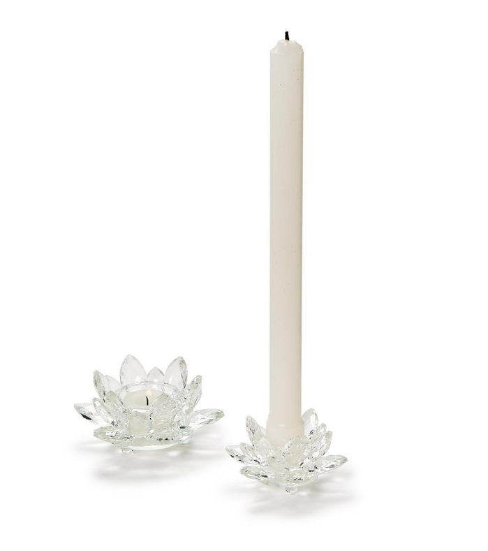 Lotus flowers have a special significance in a variety of cultures around the world, and these crystal candle holders are a beautiful way to display them in your home. Each unit includes two sizes, which can be mixed and matched to create a dazzling display.