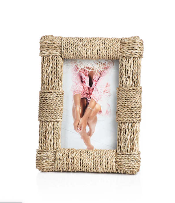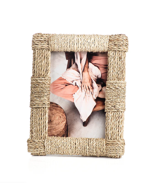This Abaca Rope Photo Frame is a stylish and eco-friendly way to display your favorite photos. Made from natural abaca rope, this frame adds a touch of rustic charm to any room. The intricate weaving of the rope creates a unique texture that complements any decor. Whether you're displaying a cherished family photo or a beautiful landscape shot, this frame is sure to enhance the beauty of your picture.Available in 5x7, 4x6 and 8x10