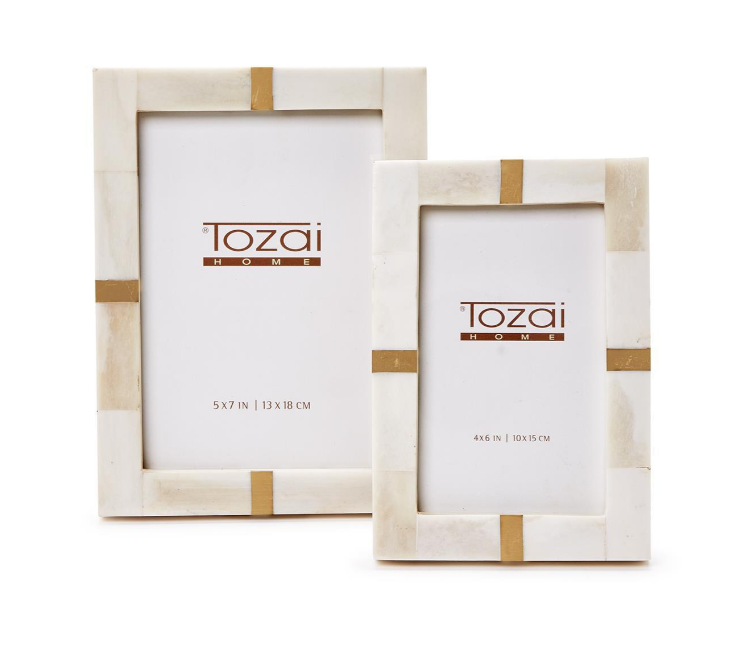 Modern and beautiful come together to create these gorgeous frames. These detailed frames are crafted with patterns made from small pieces of bones and hand carved bones. Each frame is then accented with metal to give a modern take to this ancient handicraft technique.