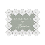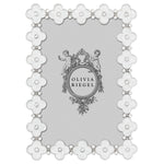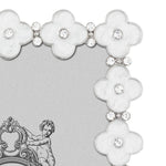 Inspired by the historic quatrefoil design—a decorative element utilized in architecture and the arts for millennia. Silver finished white-enameled pewter, adorned with hand-set clear European crystals. This picture frame features: * Moiré silk back with easel for horizontal or vertical placement. * Tarnish resistant. * Signature luxury gift box included. Jon Morris established OLIVIA RIEGEL in 2000 as a tribute to his beloved grandmother—a consummate collector of chic costume jewelry. His vision was to offer customers elegant bejeweled objects that incorporate vintage details with a modern sensibility. This picture frame is part of our Clover Collection.