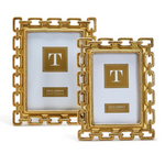 This gold chain frame is intricately detailed and crafted from resin. Finished with a velvet backing, these are beautiful frames from front to back!