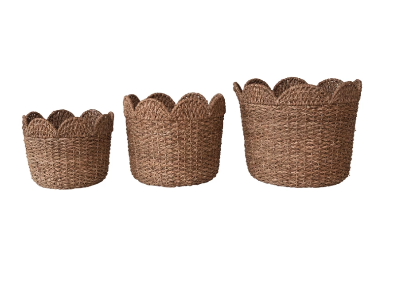 Braided Bankuan & Rattan Baskets w/Scalloped Edge