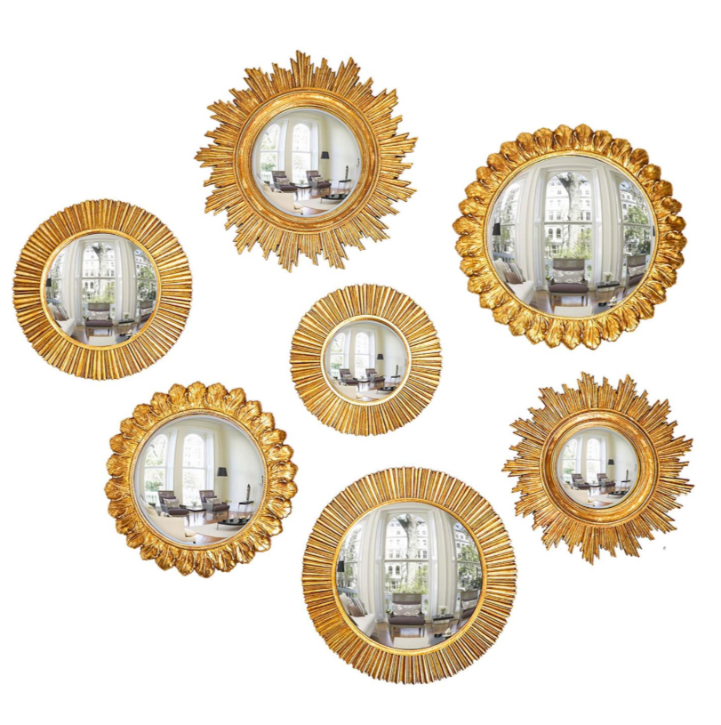 Crafted with utmost attention to detail to add elegance and charm to your living spaces. Made from high-quality resin and glass materials, this set offers not only functional reflection but also serves as a captivating piece of art. Elevate your home decor with these mirrors that bring a touch of sophistication and luxury to any room.