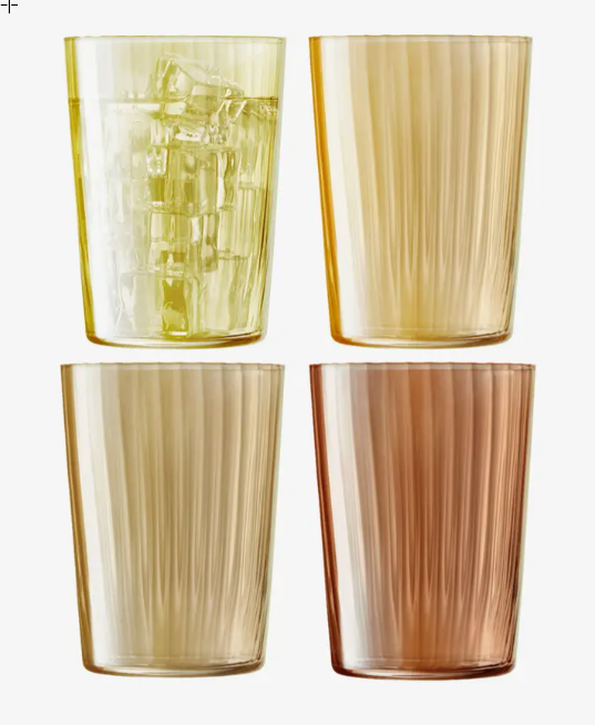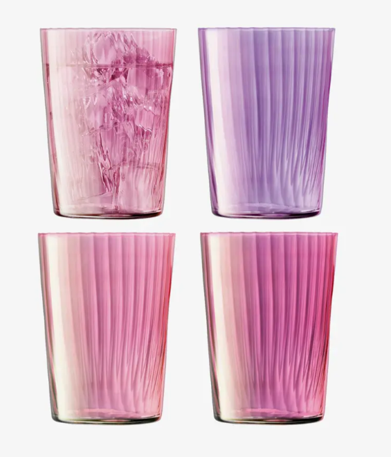 Large textured tumblers with fine walls, painted by hand in assorted tonal lusters. Set of 4. 19oz