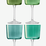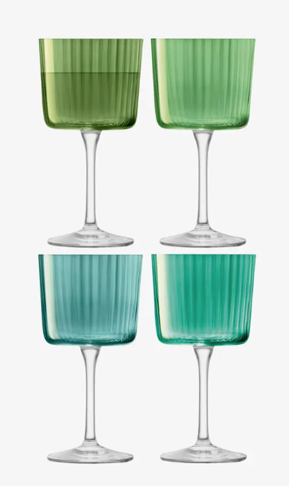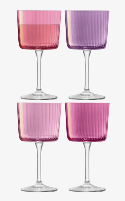 A set of textured wine glasses with fine walls, painted by hand in assorted tonal lustres. Set of 4, 8oz