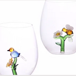 Botanical bird or bee stemless wine glasses.