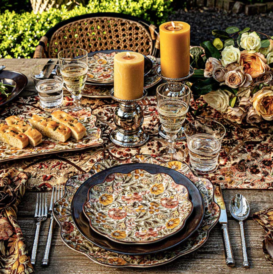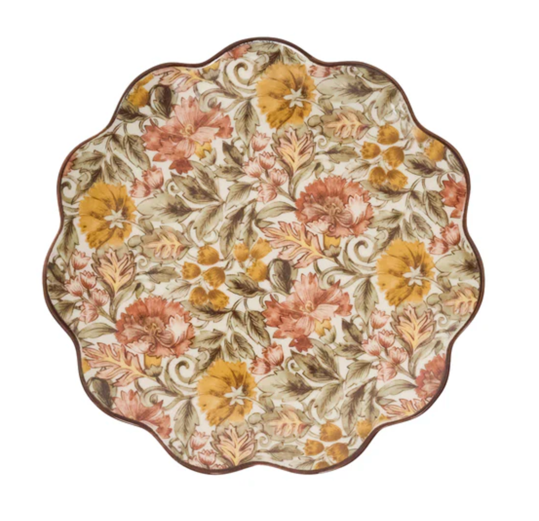 Like falling leaves, these pretty plates—with their scalloped silhouettes and floral motif reminiscent of a meadow—are designed for layering, from seasonal salads to special desserts.