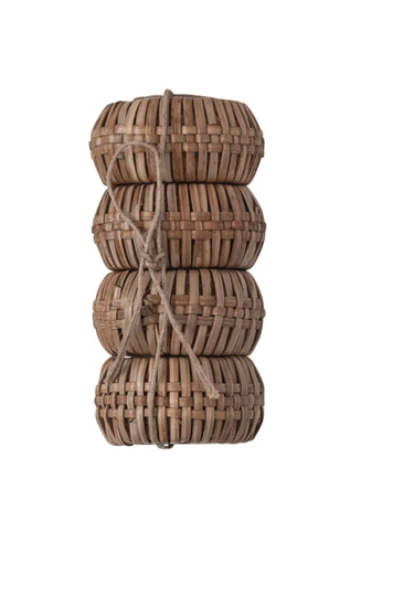 Featuring a vast selection of lush woven textures, intricate details, and timeless patterns, our collection of entertaining textiles and accessories will bring warmth and elegance to a dining space of any style. Instantly transform a breakfast nook or dining room into a sophisticated sanctuary by exploring a vast array of textiles and accessories fit for any space including table runners, napkin sets, placemats, napkin rings, tea towels, dish cloths, sponge cloths, pot holders, food pouches, aprons, and so much more. Choose from a wide variety of luxurious fabrics from cotton and velvet to linen and seagrass, and styles from mid-century modern and boho to classic farmhouse and contemporary. This boho-inspired set of napkin rings showcases masterfully handwoven rattan. Set of 4 wrapped in woven tie. Wipe clean with damp cloth. Made from rattan.