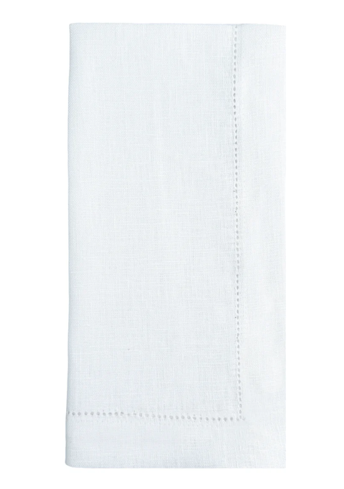 The Linen Hemstitch Napkins are a sophisticated choice for an elegant tabletop occasion. Each color is packaged as a set of 4. and tied with a nautical rope detail.Machine Wash Delicate with like colors, Hang to Dry. Imported. 100% Linen.Size: 20"x20".