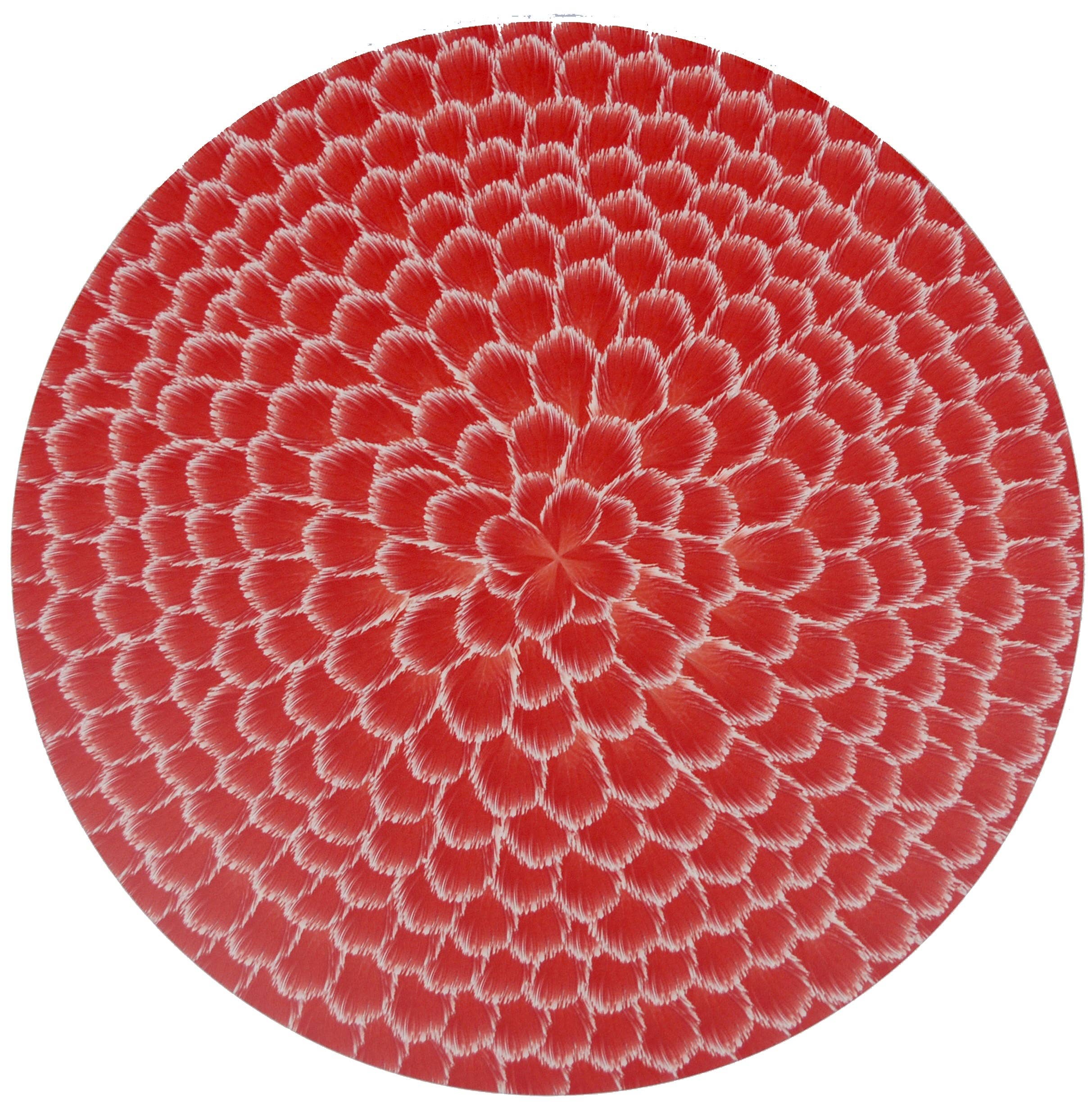 Feather design printed on a wooden placemat * 15" diameter, placemat * 4" diameter, coaster * Cork back * Made in USA * Wipe clean with damp cloth * Not intended for use as a trivet