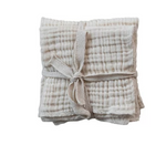 This white cotton double cloth square dishcloth set is a beautiful and practical piece that will enhance the home with its simple charm. The dishcloth is made of white cotton double cloth, a natural and durable material woven with two layers of fabric for extra softness and absorbency. The cotton double cloth is white, adding simplicity and cleanliness to the space. The dishcloths have a square shape that complements any dish or utensils. The dishcloths also have a textured surface that helps to scrub and polish items. Use them to wash, dry, or wipe dishes, utensils, countertops, or tables. They are also machine washable and easy to care for. The set includes four dishcloths that can be stored or displayed in the kitchen or dining room. Whether used for everyday use or special occasions, this white cotton double-cloth square dishcloth set will add a touch of simplicity and cleanliness to the kitchen or dining room. It measures 10 inches in length and 10 inches in width. These soft, absorbent dishcloths are perfect for everyday use and special occasions.