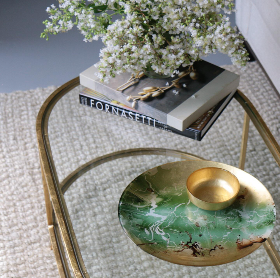 NEW ORLEANS Glass Green and Gold Marble Large Round Platter
