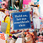 Perhaps you can prop your head on this chic pillow while you ponder. Make a statement with this charming-meets-chic needlepoint pillow. Embroidered and backed in luxe blue velvet, we've revived this Southern staple with sayings that are sure to get a smile. They are guaranteed to spark joy and make the perfect gift! Measures 11" x 11" - Small pillow, big statement! Dare to mix with our scalloped linen, contrast trim velvet, ruffled block print, and needlepoint pillows for an insta-worthy pillow pile. -11" x 11" -Front: 100% Wool -Back: 100% Cotton Velvet Related Tags: embroidered pillow, decorative pillow, summer, spring, fall, seasonal decor, summer vibes, cute pillow, bright color pillows, couch decor, housewarming gift, gift ideas, throw pillow, slogan pillow, funny pillow, velvet pillow, cushion coastal grandmother, grand millennial, snarky pillow