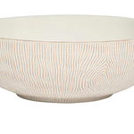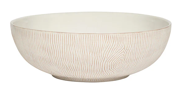 Made for serving a crowd, this large bowl is rich in texture, elegant in finish and peaceful in palette, to mix and match with so many occasions and settings. The woodsy motif is perfect for fresh garden salads, crusty slices of bread and infinite side dishes—for gathering and feasting year-round. Dishwasher, Oven, Microwave, and Freezer Safe. Avoid cleaners that may contain citrus.