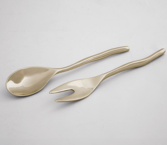 Handmade luxury. Introducing a new level of glam with the SIERRA MODERN Maia Large Salad Servers (Shiny Gold). The sensational SIERRA MODERN salad servers presented in a shimmering gold finish have a luxurious look and feel. With gently curving handles and a glowing proprietary metallic finish, the large servers add a touch of glam to any table. Food- and dishwasher-safe, the sparkling set adds a modern new dimension to Beatriz Balls award-winning designs. Mix and match SIERRA MODERN shapes,
