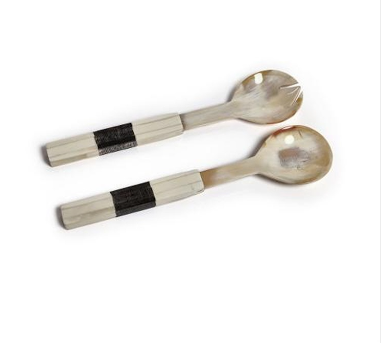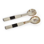 Elevate your dining experience with this set of 2 salad servers featuring variegated horn with bone etched handles. These unique and stylish servers are perfect for serving salads at any gathering. The combination of horn and bone creates a beautiful contrast, making them a stunning addition to your tableware collection. Impress your guests with these elegant and functional salad servers.