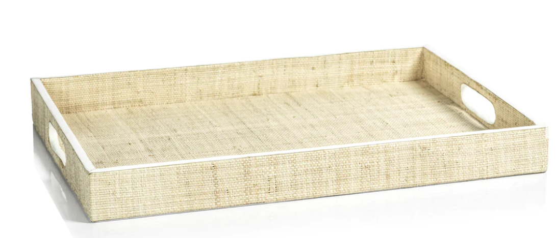 Atelier Natural Fiber Raffia Serving Tray with Leather Trim