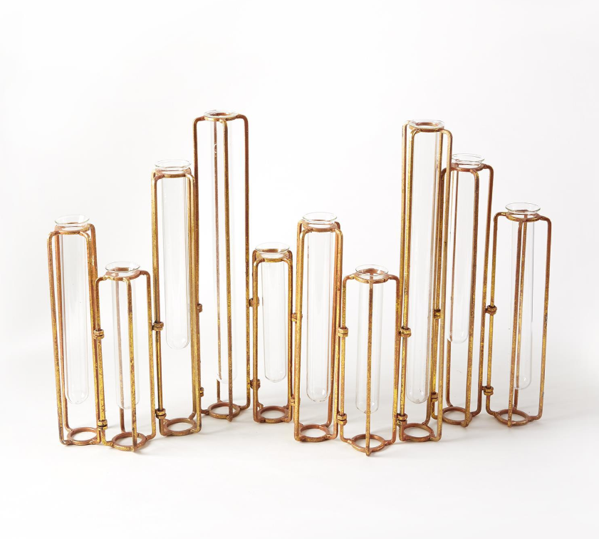 Our Lavoisier flower vases are inspired by classic laboratory equipment and have a vintage industrial feel - each piece is hinged so that it can be rotated and arranged in various positions. These vases are named for Antoine Lavoisier, the French chemist who first determined the composition of water.