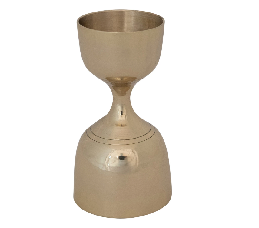 2" Round x 3-3/4"H 1 oz./2 oz. Brass Double Sided Cocktail Jigger