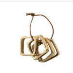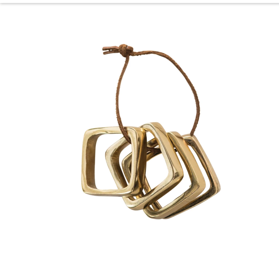 1-3/4" Square Metal Napkin Rings on Leather Tie, Brass Finish, Set of 4